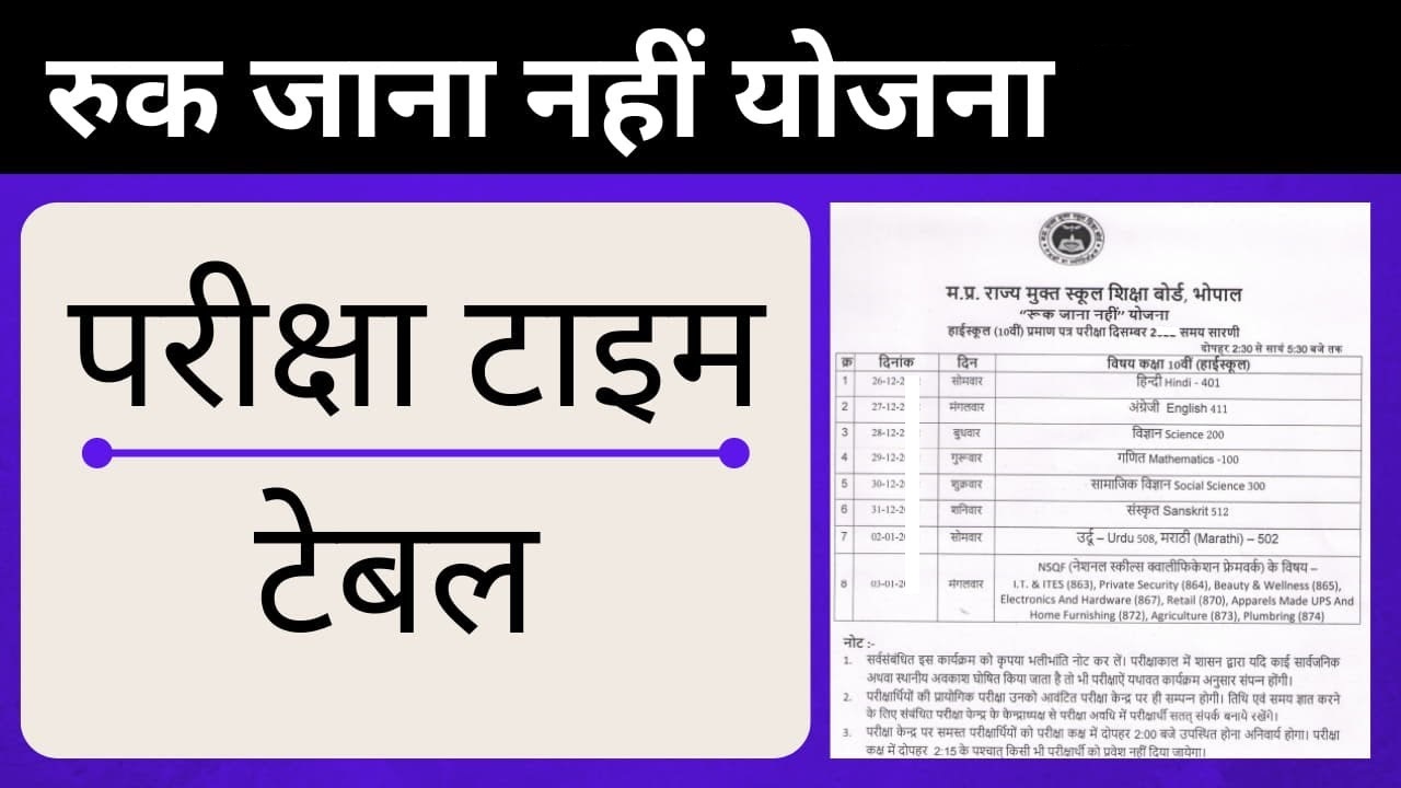 RUK JANA NAHI YOJNA TIME TABLE 2024
